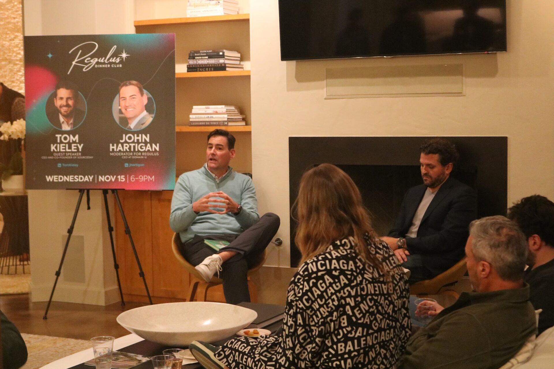 Our moderator, John Hartigan (CEO at Domain-U) interviewed our featured guest, Tom Kieley (founder/CEO at SourceDay) in a fireside chat format. Tom inspired us with his thoughts on the importance of community and perseverance. After Q&A, we enjoyed a delicious meal courtesy of our chef, Ashlie Sarna.